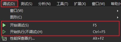 - `F5` 是“开始调试”,程序会在调试器附加的状态下运行。