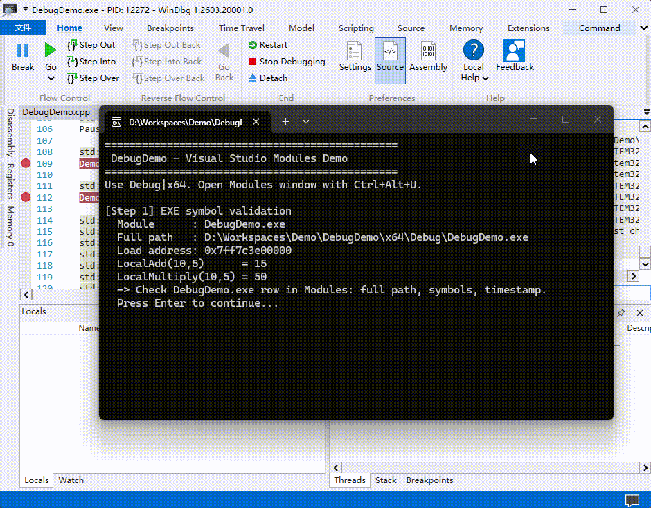 不得不说,现代版的 WinDbg 越发有 IDE 的感觉。